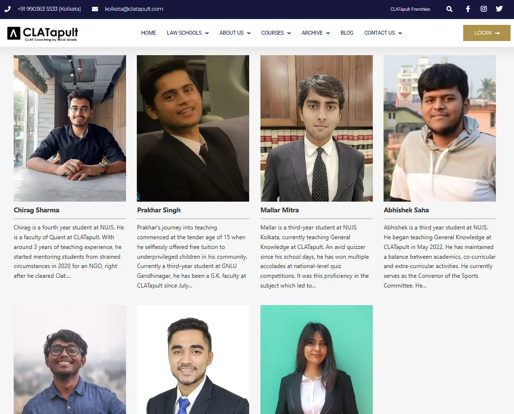 “No other institute in Kolkata is even close to Clatapult when it comes to delivering quality and purposeful training program for various law entrance examinations. Clatapult’s unique selling proposition is it’s training methodology which involves classes by NUJS grads”